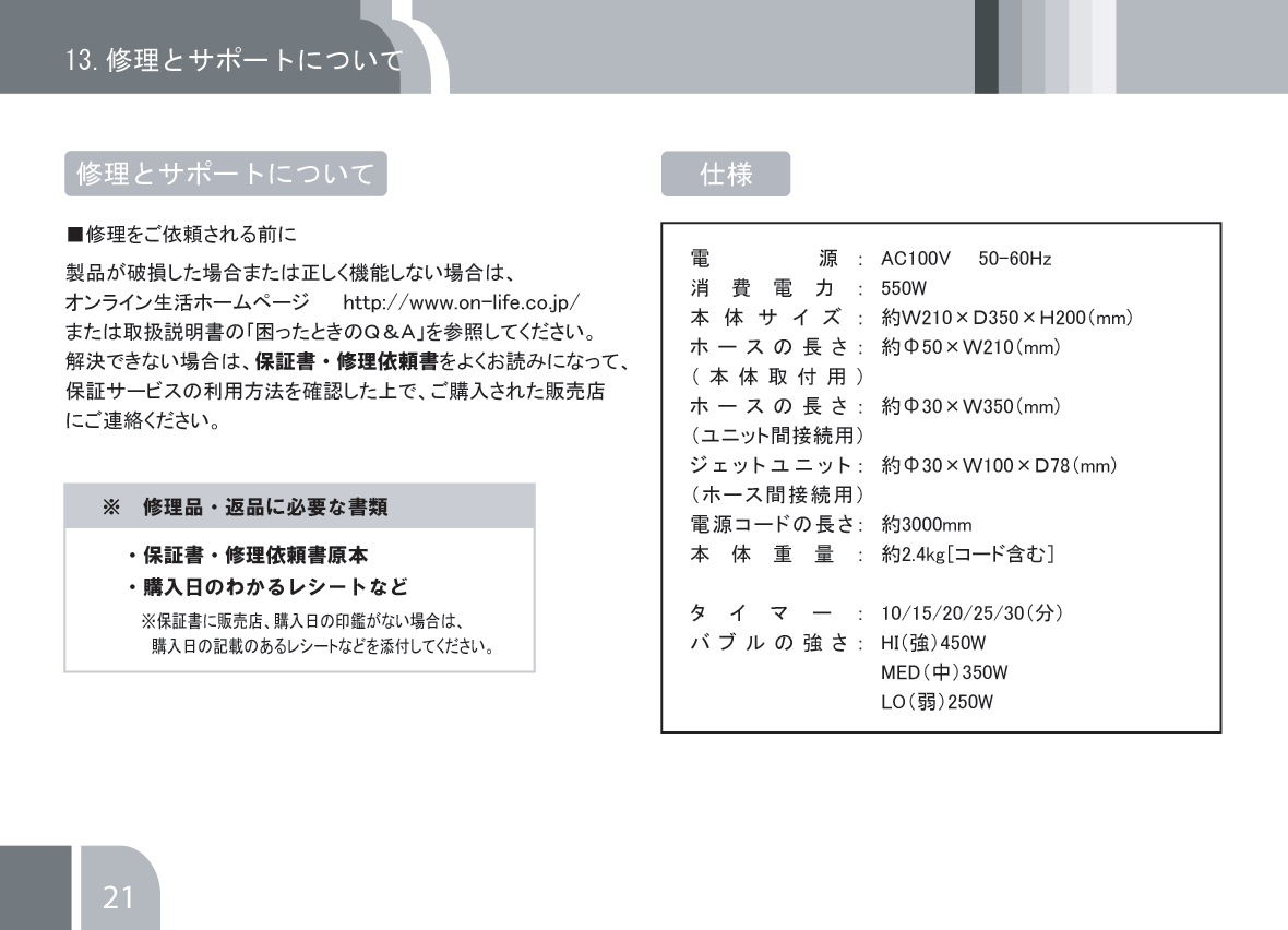 ジェットバブルスパ取扱説明書 21P